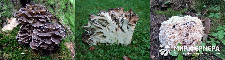 Грифола зонтичная, спарасссис курчавый и грифола курчавая схожи формами произрастания – они представляют собой крупные сростки, которые можно разделить на самостоятельные ножки и шляпки. Также все эти виды редки. Просто все эти грибы не были изучены досконально, их не сравнили между собой и поэтому не дали им разные названия.