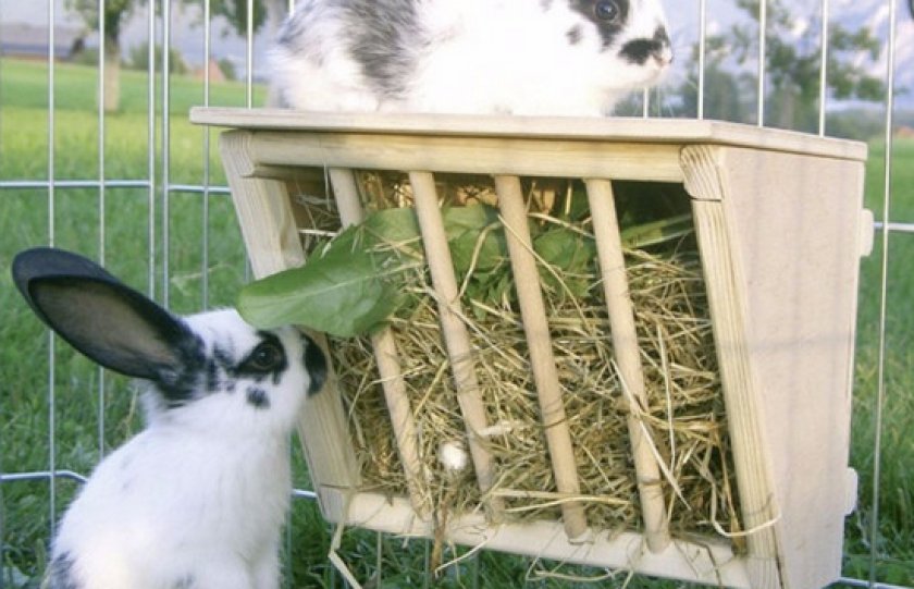 Кролики должны постоянно есть сено, поэтому важно позаботиться о такой кормушке: