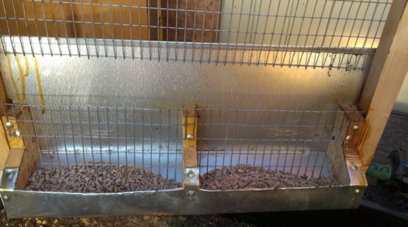 Бункерные ясли являются наиболее предпочтительными среди фермеров и просто хозяев, которые держат кроликов. Они очень удобные для кормления животных гранулированными и зерновыми кормами. Кормовая смесь насыпается прямо в бункер через специальное отверстие, что не требует лишних манипуляций со снятием и установкой кормушки каждый раз, когда надо насыпать еду животным. Перед другими видами приспособления для кормления кроликов бункерные ясли имеют явные преимущества: