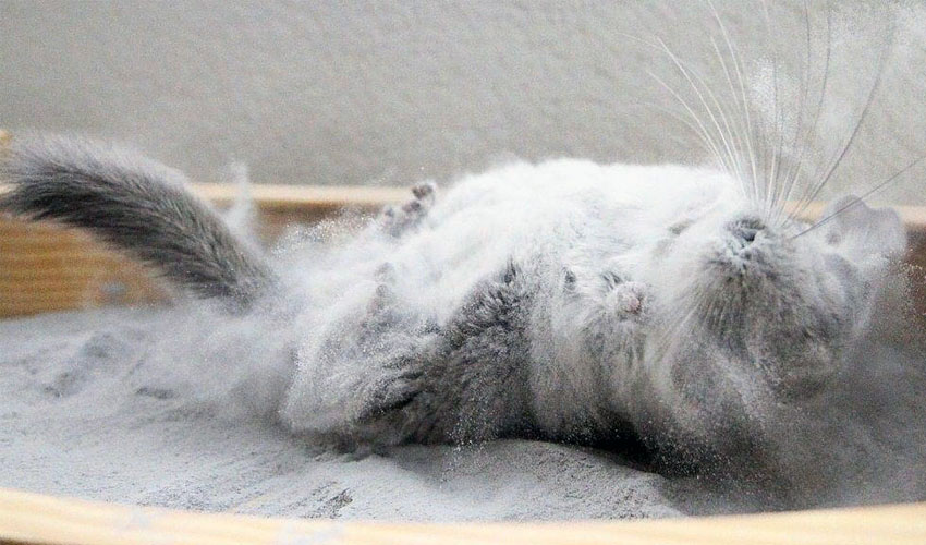 Бывают случаи, когда животное не желает принимать песочные ванны, выражая недовольство всеми возможными способами. Причиной такого поведения может быть некачественный наполнитель. Если животное было куплено у заводчиков, поинтересуйтесь, какими к какому песку животное привыкло, и покупайте такой же.