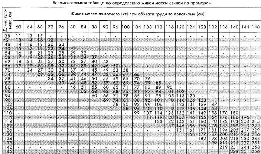 Маленькие частные хозяйства часто не располагают необходимым оборудованием для определения массы свиней. Бывалые свиноводы научились определять эту цифру самостоятельно — по замерам роста и веса животных, используя расчеты по таблицам.