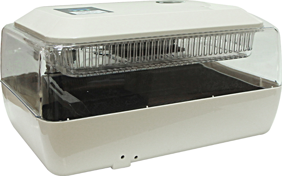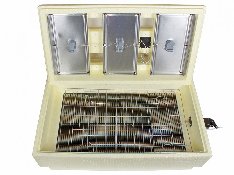 Инкубатор для небольшой домашней фермы, который позволяет одновременно выводить до 104 птенцов. Имеет цифровой регулятор температуры, микропроцессор для точного соблюдения параметров и дисплей с отображением данных. Решетка прогревается равномерно благодаря инфракрасным обогревателям, также есть аккумулятор для работы при отключении электросети. Дополнительная вентиляция не требуется.