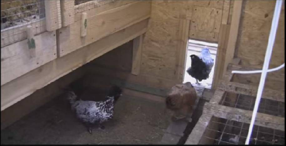 Лаз для кур устраивается с южной стороны, с небольшим порогом – 5-7 см от пола. Грань лаза для кур породы Декалб должна составлять 30 см. Если в курятнике будут жить курицы мясных кроссов, то потребуется выход большего размера.