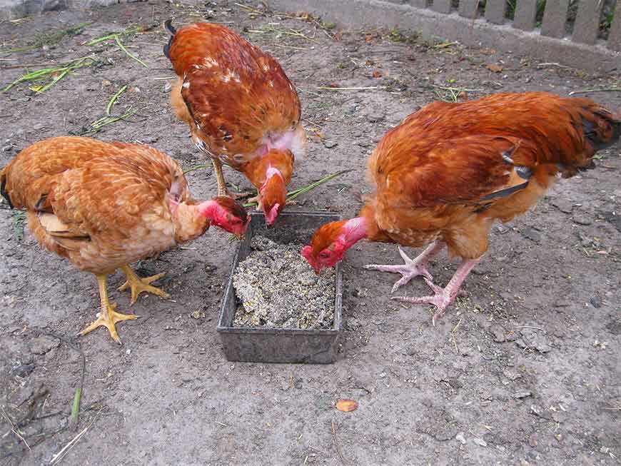 Кормят курочек три или четыре раза в сутки. Летом желательно давать курочкам сухие корма, а в зимнее время упор делают на мешанки.