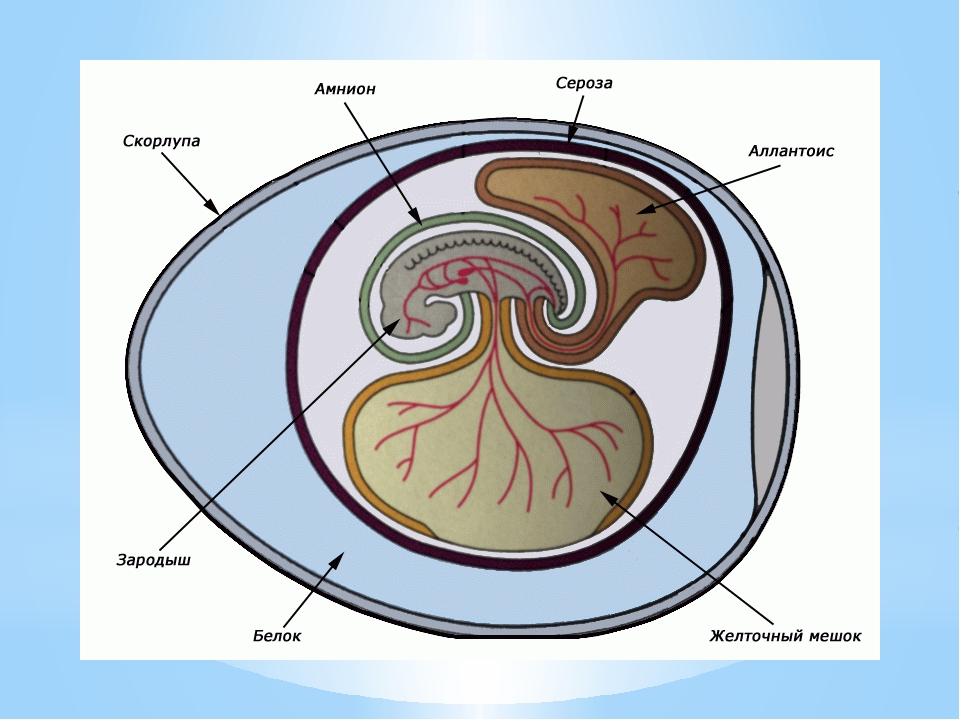 Внутри яйца птенчик надёжно защищён амниотической оболочкой.