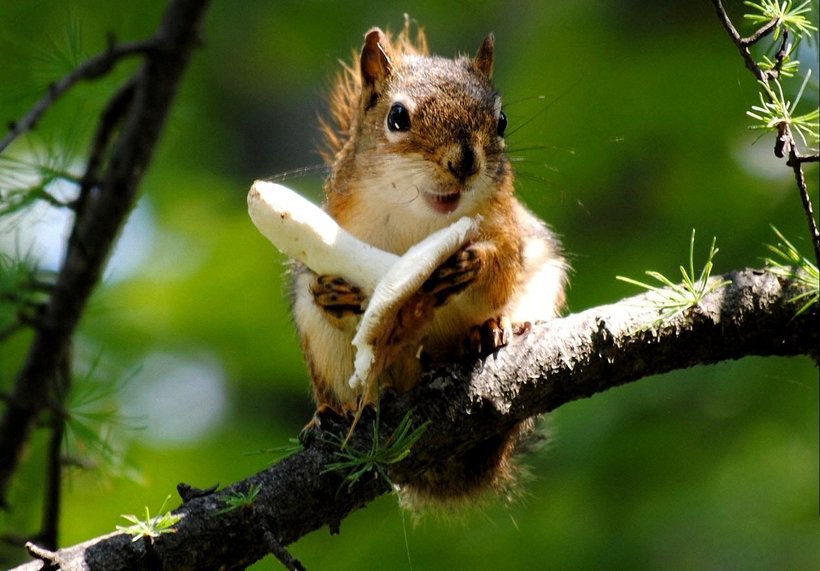 Нельзя не сказать о том, что пушистые зверьки не прочь полакомиться и грибами, которые ими нередко заготавливаются и на зиму особыми методами. Удивительно, но белки легко отличают съедобные варианты грибов от несъедобных.