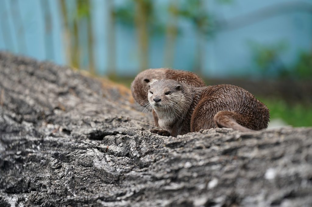 Очень интересно наблюдать, как зверьки ухаживают за собой. Для того, чтобы очистить плотный мех от рыбьих чешуек и налипшей грязи, они забавно купаются. Ныряют, затем выплывают на поверхность, кувыркаются.