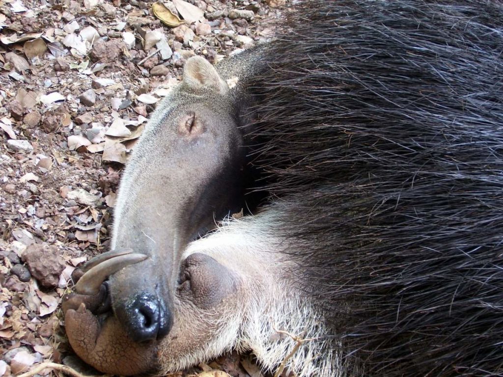 Четырехпалый (тамандуа) муравьед вместе с хвостом равен 1,3 метра, а максимальный вес всего 5кг.