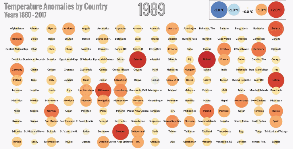 Изменения происходят медленно, это не всегда заметно простому человеку. По данным ученых, в начале 80-х годов экстремально жаркое лето наблюдалось на 0,2% поверхности земли. В настоящее время явление встречается на 10%, и тенденция ежегодно увеличивается. Представляем вашему вниманию видео, наглядно показывающее аномалии температурных режимов на планете.
