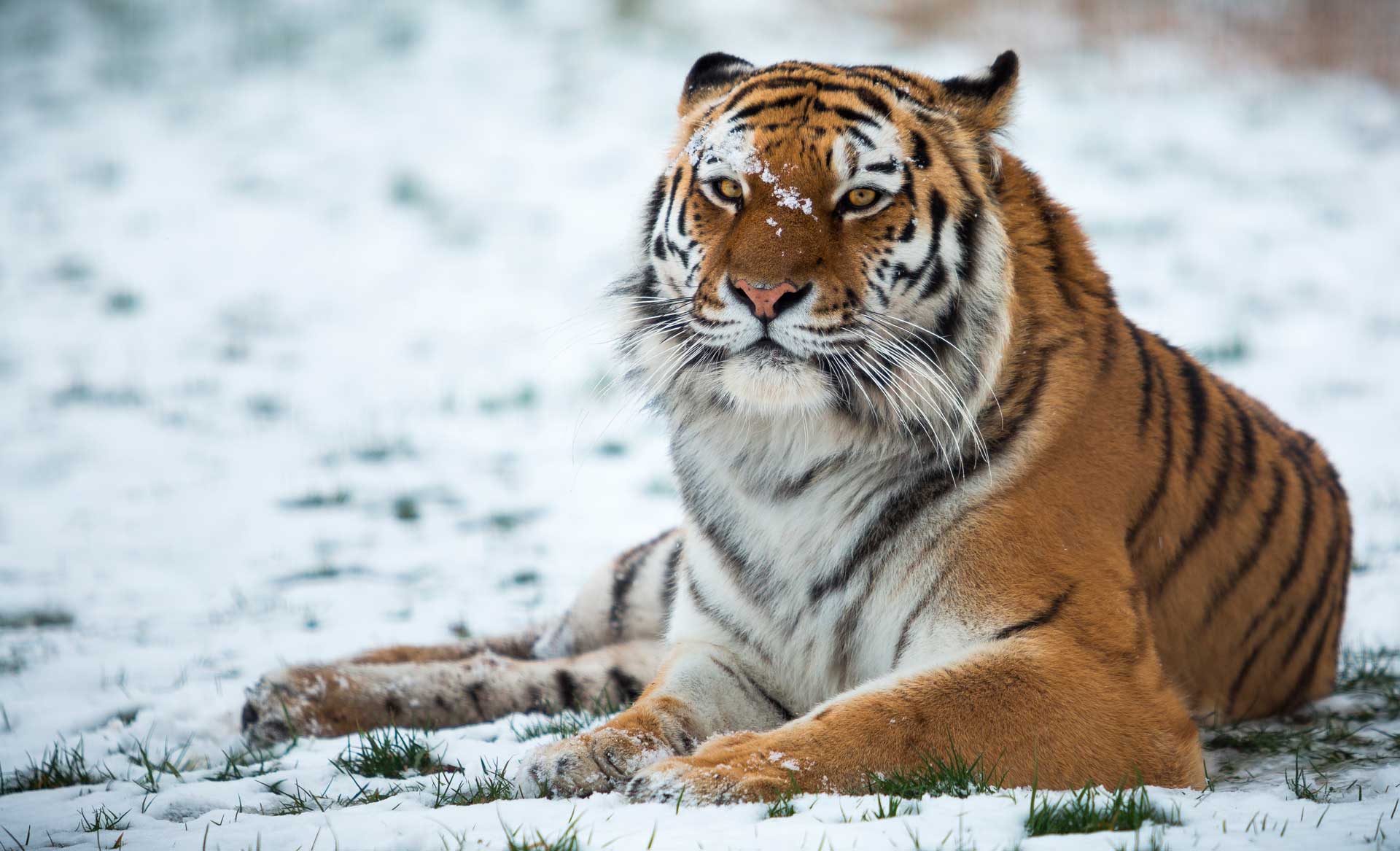 Только этот вид тигра способен пережить любую суровую зиму. Его шкура в зимнее время светлеет, становится гуще и очень пушистой. Он легко освоил жизнь в снегах. В этом помогает ему его строение тела. У амурского тигра широкие лапы при помощи, которых он с легкостью передвигается по высоким сугробам и снегам в погоне за своей добычей. Хищник легко охотится даже ночью, его зрение в 5 раз лучше чем у человека. Имея огромные размеры, тигр не вынослив. Чтобы завладеть добычей, ему приходиться подкрадываться к ней очень близко, в чем и помогает окрас, который сливается с сухой травой. Амурский тигр предпочитает вести одиночный образ жизни. Границы своей территории, подобно всем представителям семейства кошачьих, тигры метят мочой.