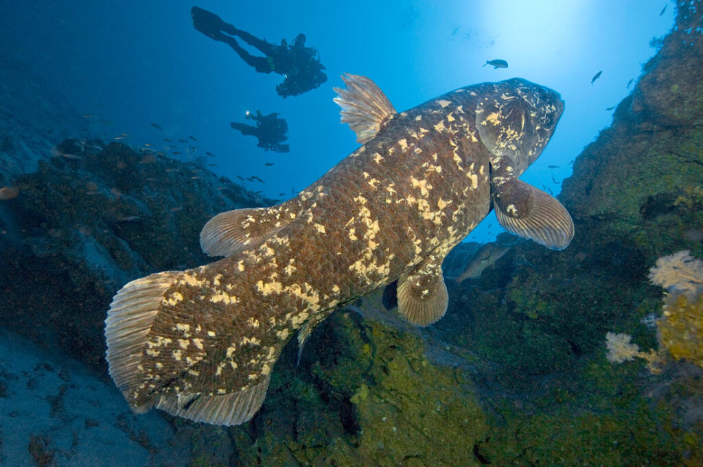 Еще одним представителем двоякодышащих рыб являются латимерии (целаканты). Они совсем немногочисленны и покрыты таинственной завесой. Обитают они у Коморских островов. Однако местными рыбаками было добыто их за всю историю не более двухсот штук. Длина рыбы составляет от 43 до 180 сантиметров, а масса достигает 95 кг. Интересен тот факт, что все латимерии были пойманы с сентября по апрель, причем в темное время. Рыбаки ловили их на наживку из кальмаров или кусочков рыб. Удочки забрасывались на приличные глубины (от 150 до 400 метров). Делались попытки поймать латимерию ловушками или тралом, но ничего из этого не вышло. Возможно, виной тому непростой рельеф мест обитания рыбы.