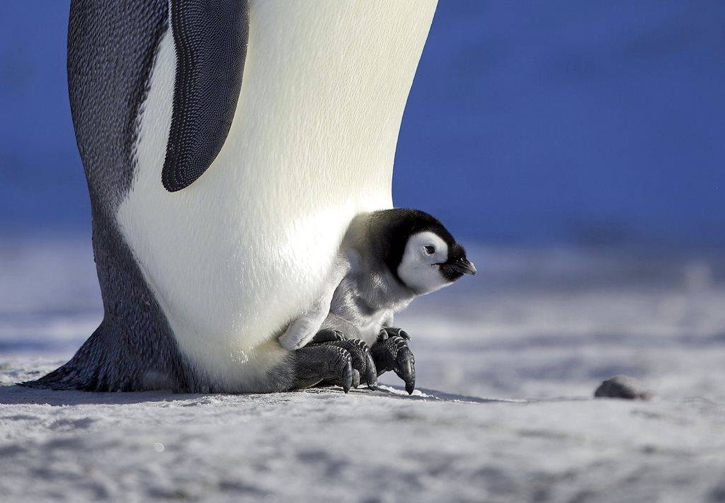Птенец не имеет верхнего слоя перьев, да и три другие представляют скорее теплый пух коричневого цвета. Он согревает малыша, но в воде не спасает. Поэтому до двух лет они не заходят в ледяные воды Антарктики.