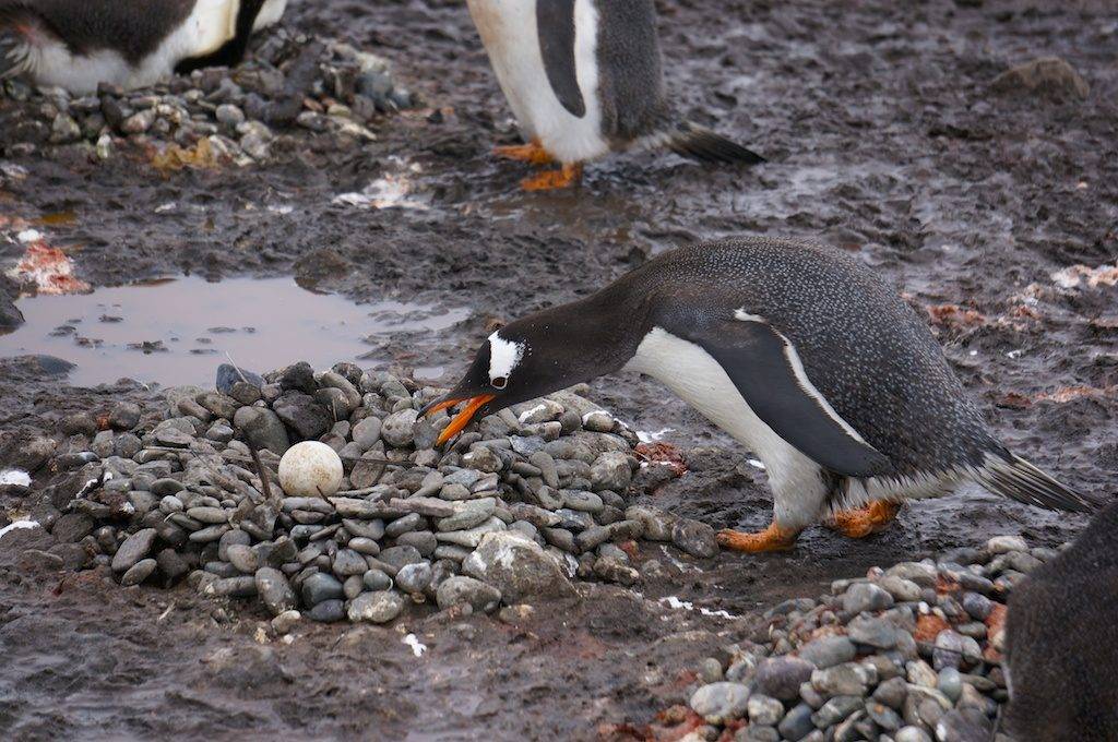 Обычно в кладке появляются 2 яйца, иногда одно, очень редко – три. Яйцо пингвина имеет белый или чуть зеленоватый цвет. Высиживают яйца оба родителя, сменяя друг друга во время отлучек для добычи пищи. Инкубационный период длится от 30 до 100 дней в зависимости от вида птицы.