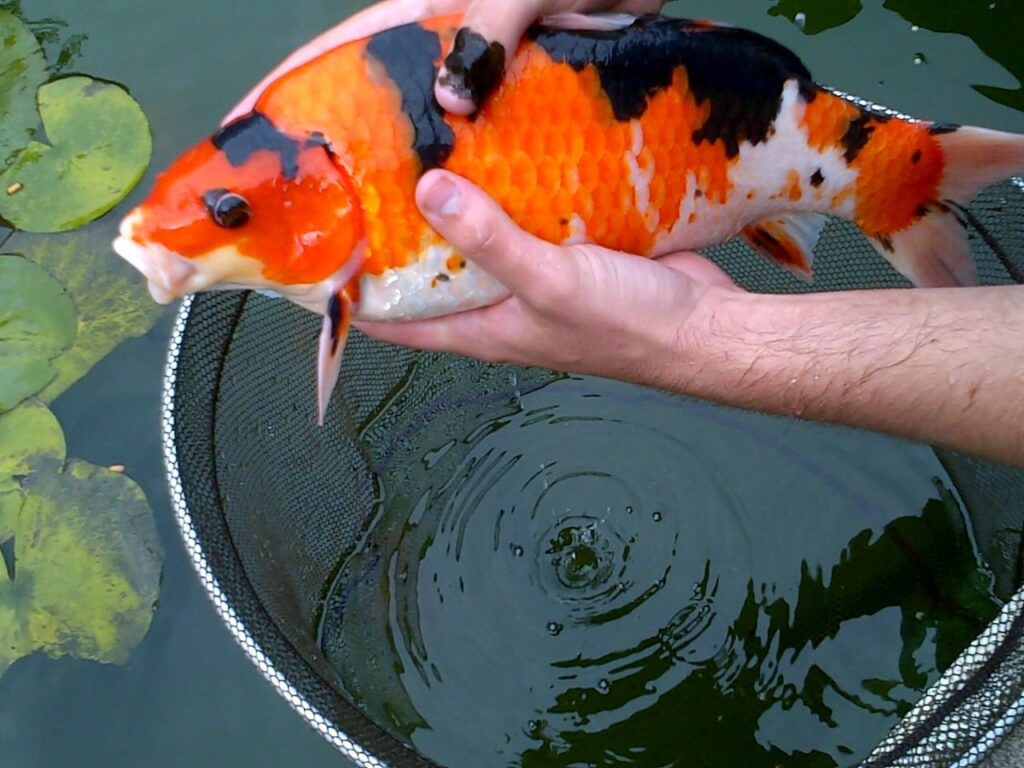 Окраска красно-белая, однако, бывают и более экзотические варианты. По форме тела схож с золотыми рыбками, только в разы крупнее их.