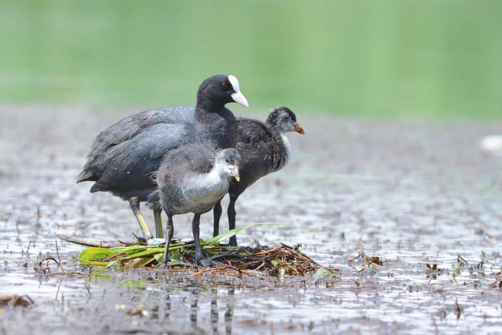Именно поэтому в тех водоемах, где обитают черные утки лысухи, плавает много недостроенных гнезд. Самцы также строят себе еще одно гнездо, которое предназначено исключительно для них самих. В нем самец будет отдыхать от тяжелых родительских забот.