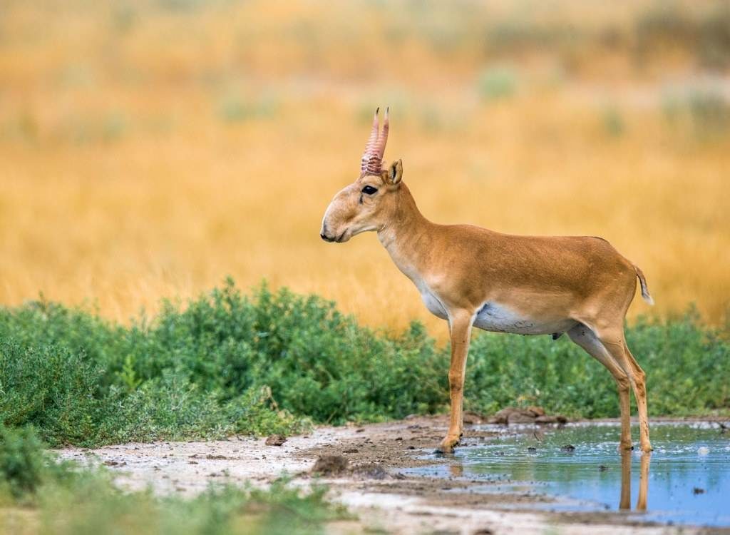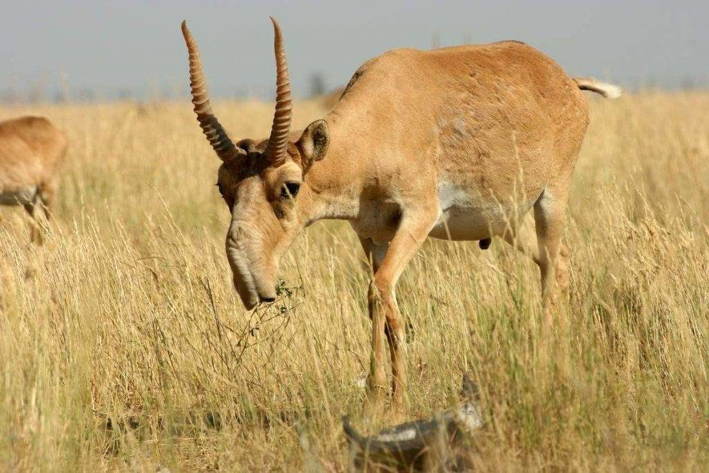 При опасности сайгаки с легкостью набирают высокую скорость, которая может достигать 80 км\час.