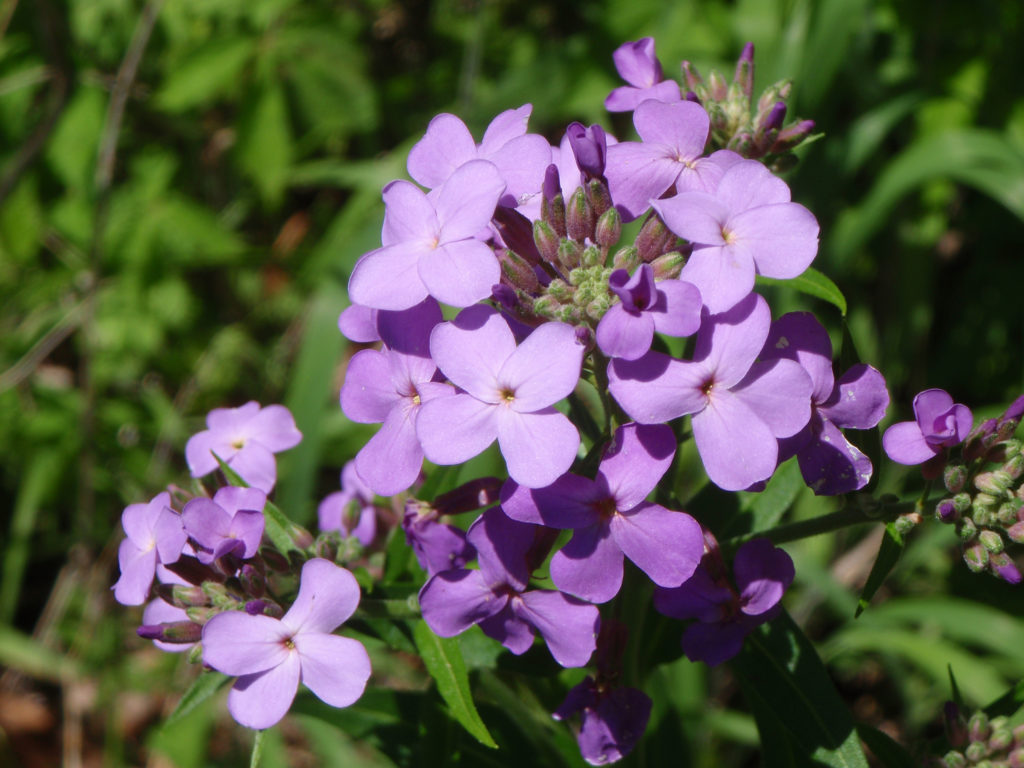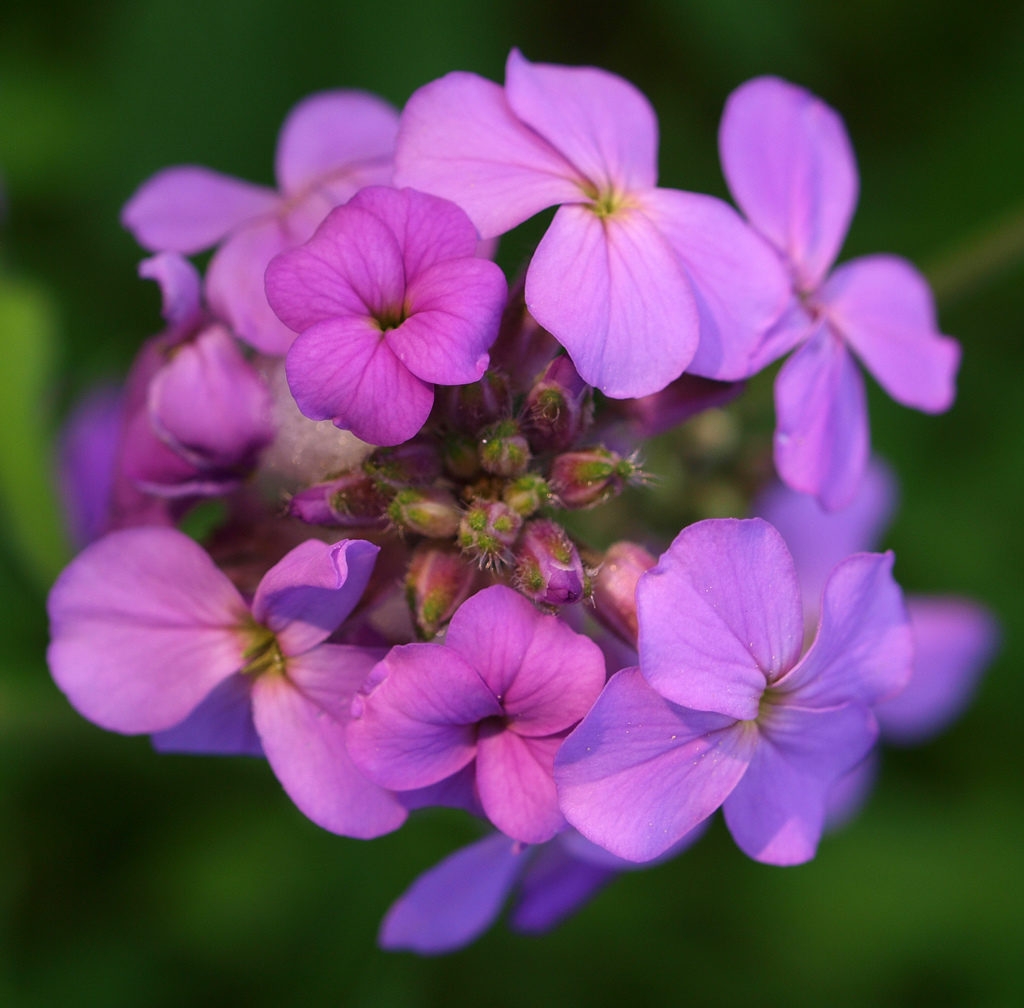 Цветки вечерницы мелкие, розовых, сиреневых или фиолетовых тонов. Цветки соединены в рыхлые кистевидные соцветия. Вечерница по внешнему виду очень напоминает флоксы. Есть одно отличие – у цветка вечерницы 4 лепестка, а у флоксов – 5.