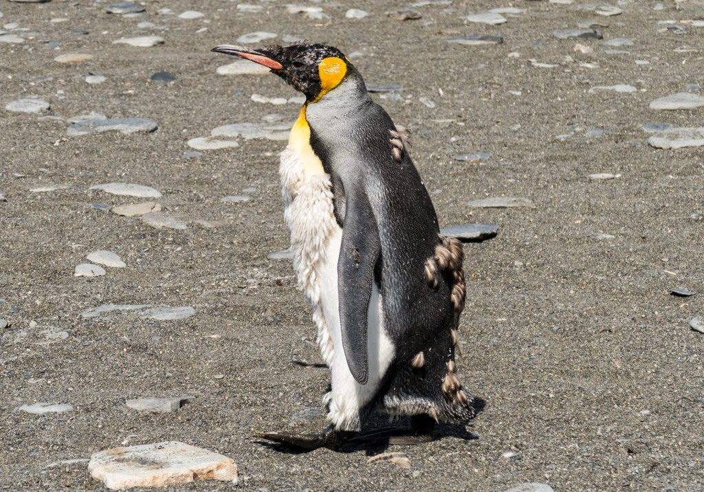 Раз в год пингвин линяет: новые перья растут с разной скоростью, выталкивая старое перо, поэтому часто птица в период линьки имеет неопрятный клочковатый вид.
