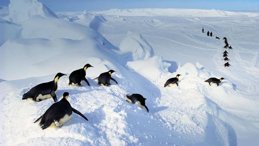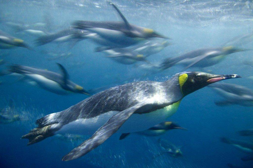 Крылья пингвинов больше напоминают плавники. Для высоких скоростей птице нужен развитый киль и мышцы, прикрепленные к лопаткам. Такой набор мускулов позволяет пингвинам делать мощные рывки. Ноги выступают в качестве руля. В воде они развивают скорость 12 км/ч. Это единственные птицы, которые ходят прямо. Передвигаться по рыхлому снегу во время потепления неудобно, поэтому они ложатся на живот и скользят. Пингвины питаются и рыбой. Средняя продолжительность жизни составляет 20 лет. Пернатые моногамны, в высиживании птенцов участвуют оба партнера. Естественными врагами являются акулы, морские котики, тюлени, .