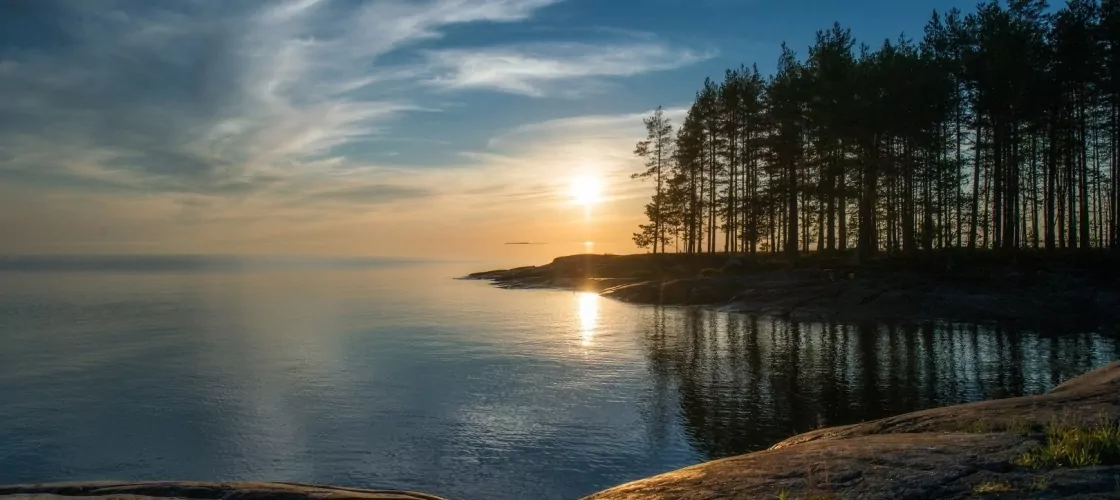 Если найти Онежское озеро на карте, можно увидеть рельеф, сформированный сложными тектоническими процессами и движением древнего ледника. Так, южное побережье водоёма является преимущественно низким и цельным, в то время как его скалистый северный берег разорван множеством заливов. Там же сосредоточено большинство островов Онего, общее число которых составляет более 1600.
