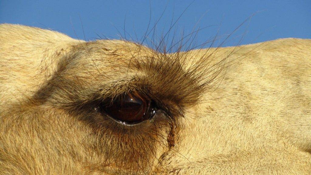 Большие глаза верблюда надежно защищены от песка, солнца и ветра густыми, длинными ресницами. Мигательная перепонка, третье веко, защищает глаза животного от песка и ветра.
