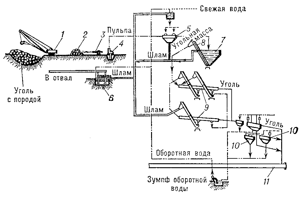 Более прогрессивный способ добычи – гидравлический. Но его можно применять только при наличии значительного количества подземных вод. Порода разрушается и поднимает на поверхность под воздействием струй воды. Технологии такой разработки шахт постоянно совершенствуются и сегодня используются следующие виды подачи воды: