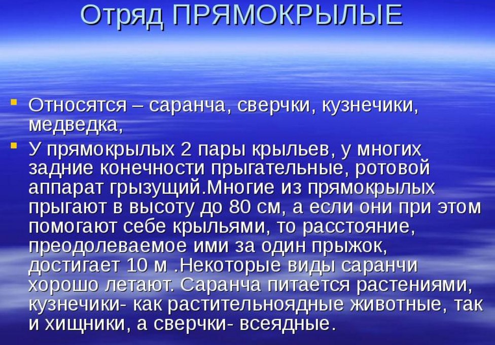 крыльев 200(мм) или больше. Самые маленькими прямокрылыми являются сверчки (например, представители