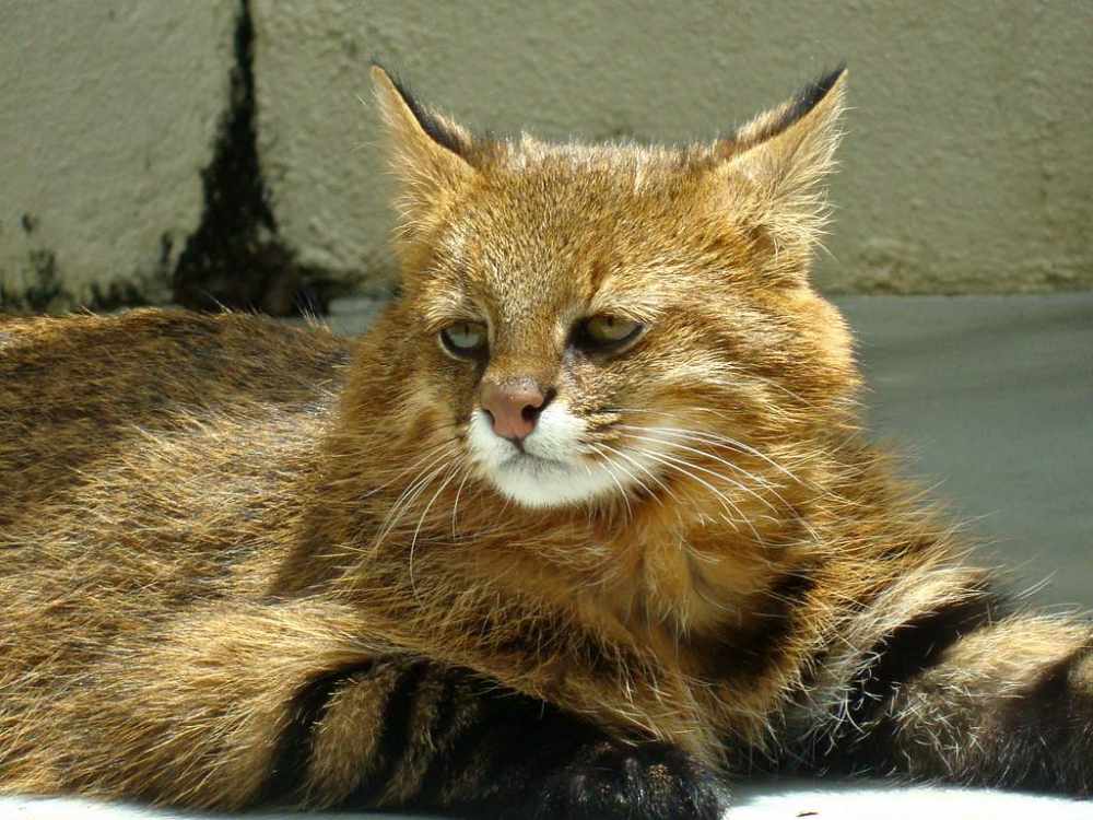 Окрас может быть серебристым или серым, светловато- жёлтым или белым. Обитает животное в степях Южной Америки, встречается также на плодородных равнинах, в некоторых случаях в лесах и на болотах. Ночью охотится на мелких грызунов, шустрых ящериц и разнообразных насекомых. Пампасские кошки способны напасть и на домашнюю птицу.