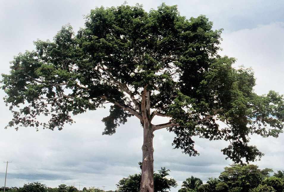 Это удивительное дерево семейства баобабовых местные жители именуют телеграфным столбом. Это прозвище чрезвычайно точно отражает внешний вид дерева. Растение может достигать в высоту 50 метров, имеет огромную раскидистую крону, ветви ее напоминают провода. Внизу, у корней, дерево имеет досковидные подпорки. Корни только боковые, охватывают большой радиус.